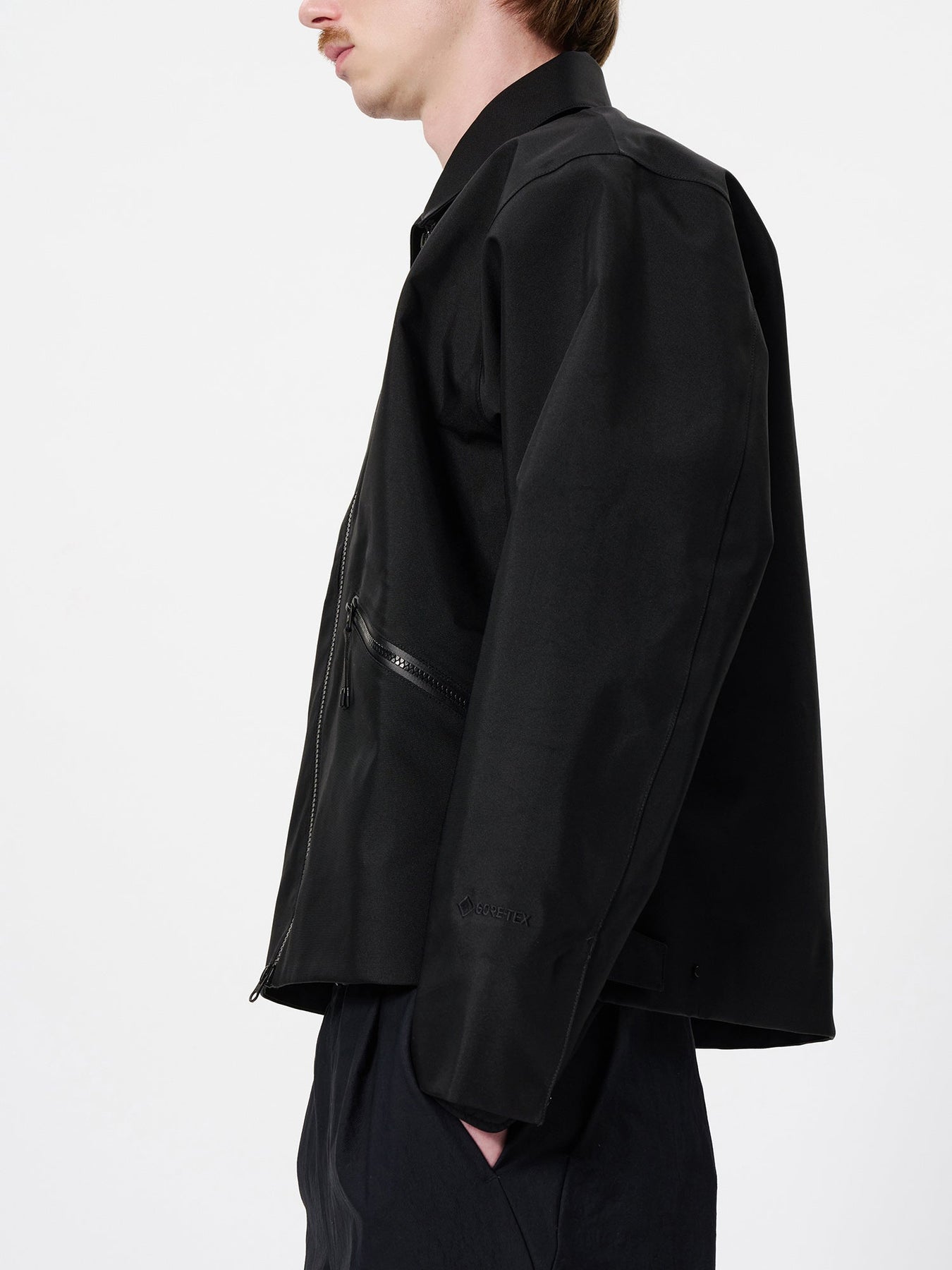 A waterproof drizzler jacket that blends outdoor-grade performance with a clean, urban aesthetic, using GORE-TEX® products fabric.