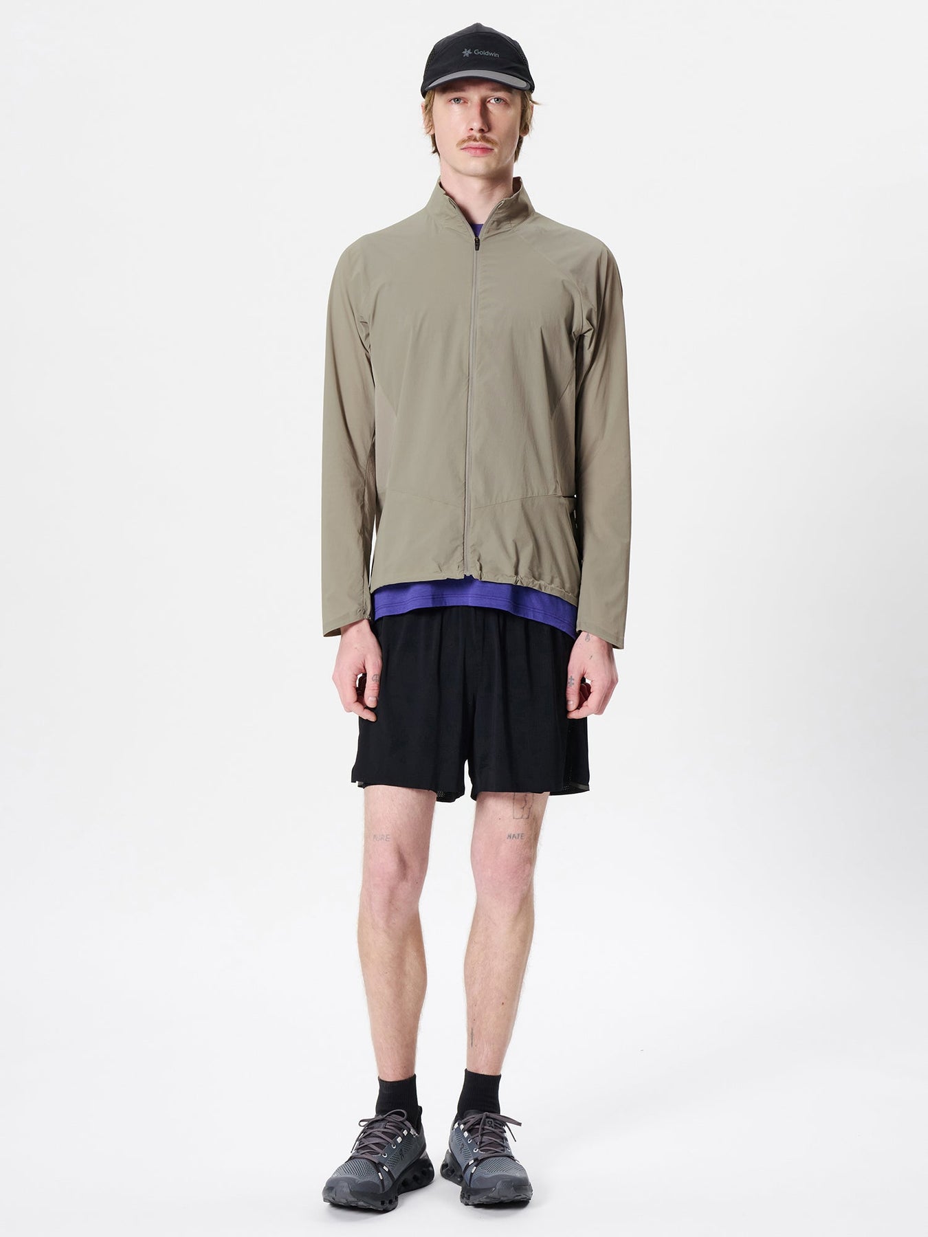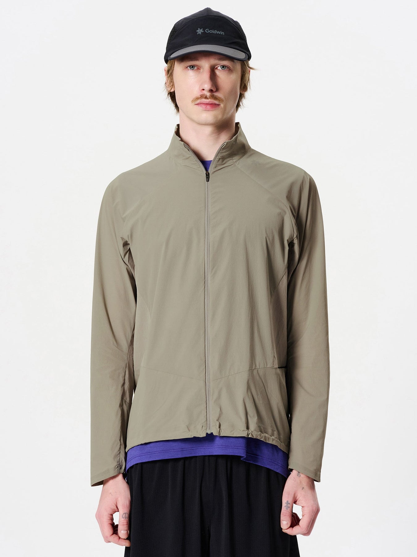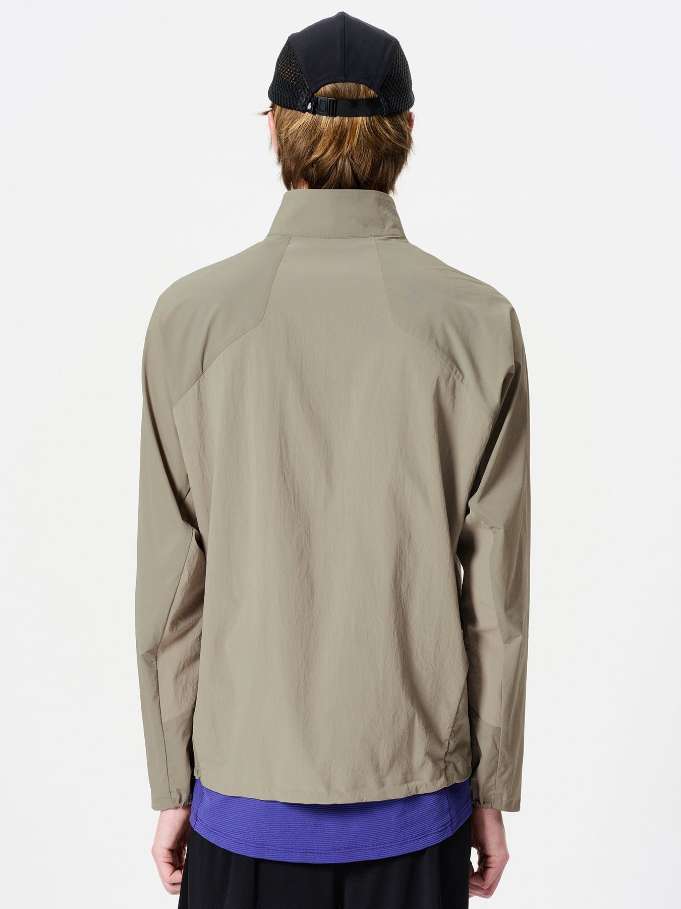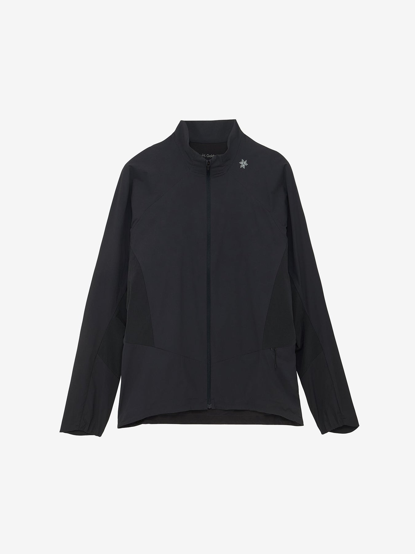 A running-focused jacket designed to stay comfortable even in warm conditions, using strategic fabric placement to balance protection, breathability, and freedom of movement.