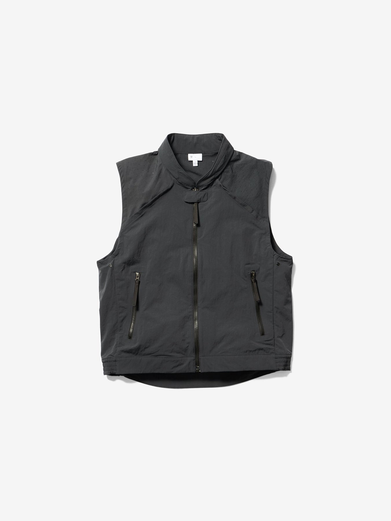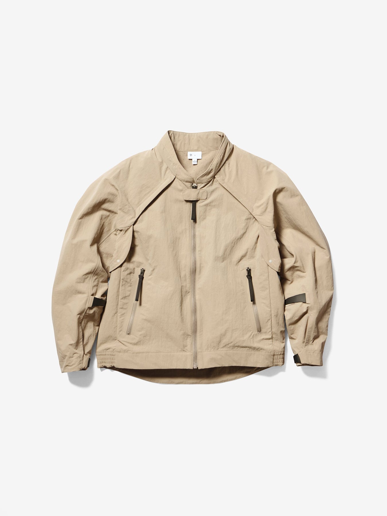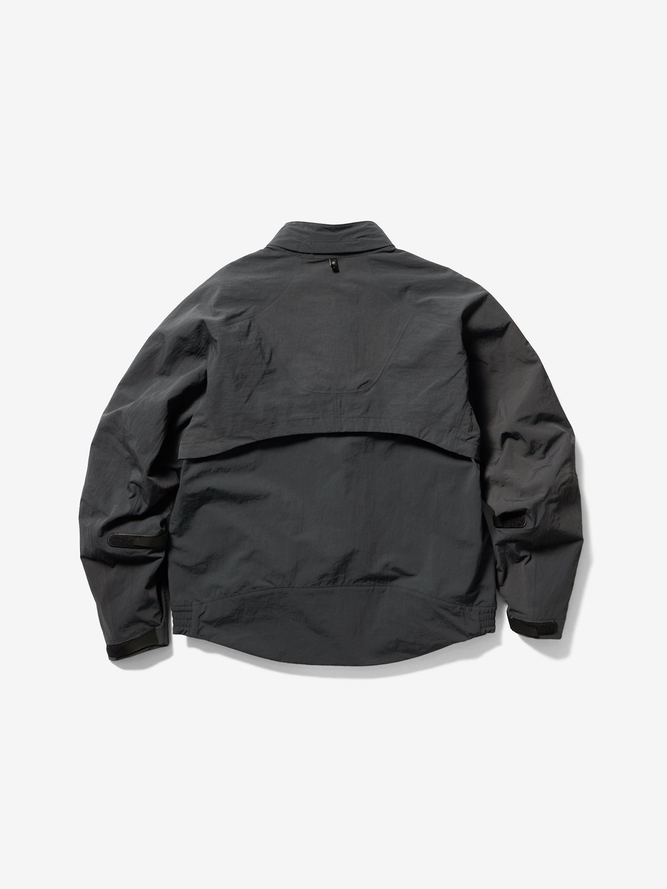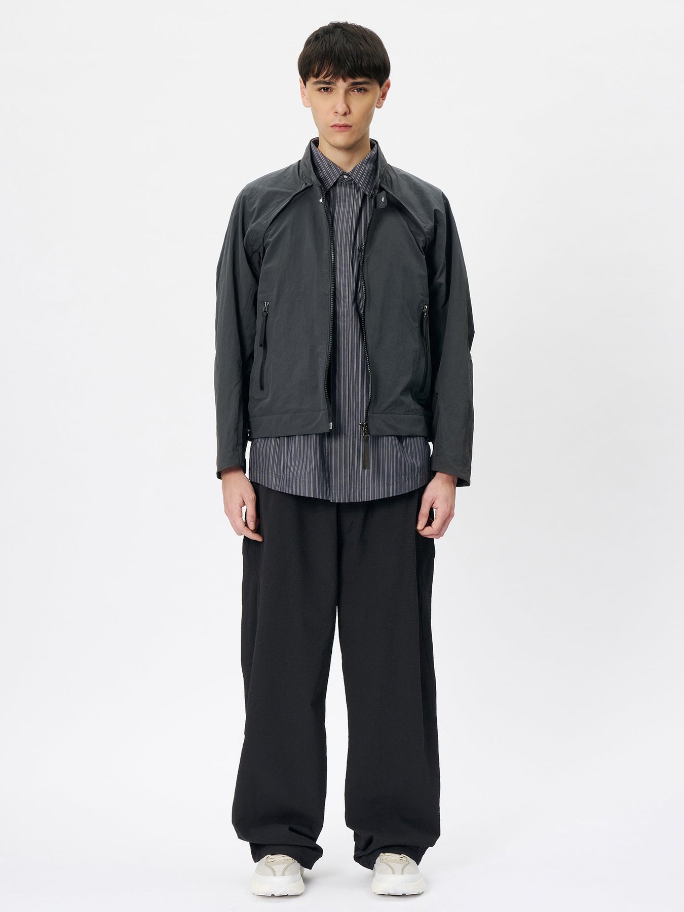 This short jacket features a structured, architectural silhouette. Its convertible design allows the bolero sleeves and vest body to be detached, offering versatile styling options. Adjustable tabs on the sleeves and hem ensure a customized fit, and the entire jacket is treated with a fluorine-free water-repellent finish.