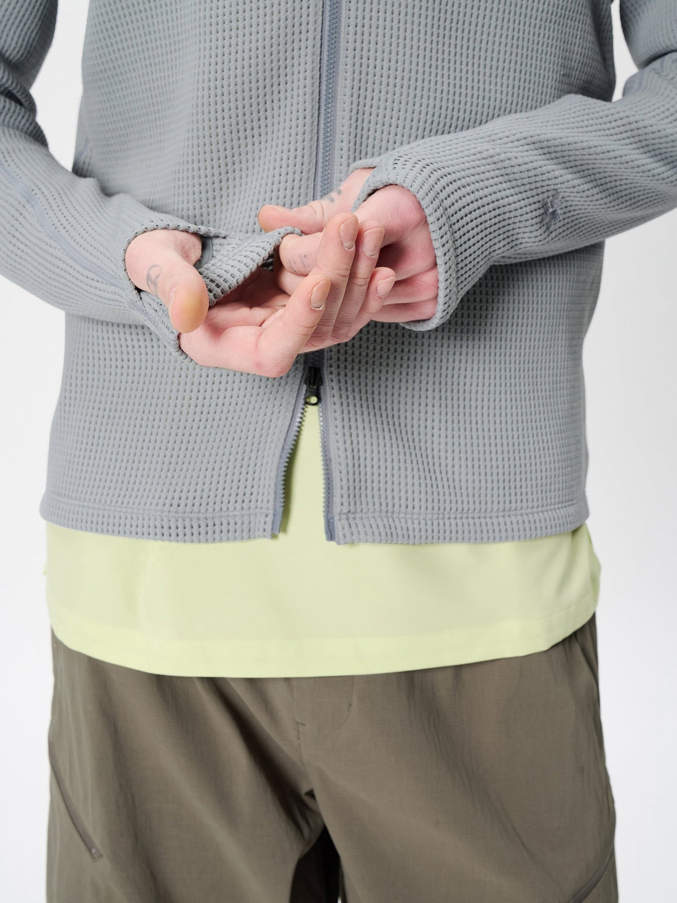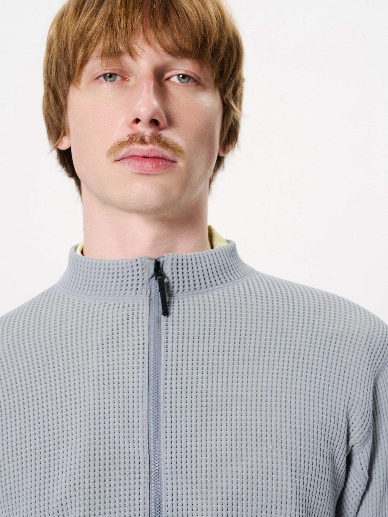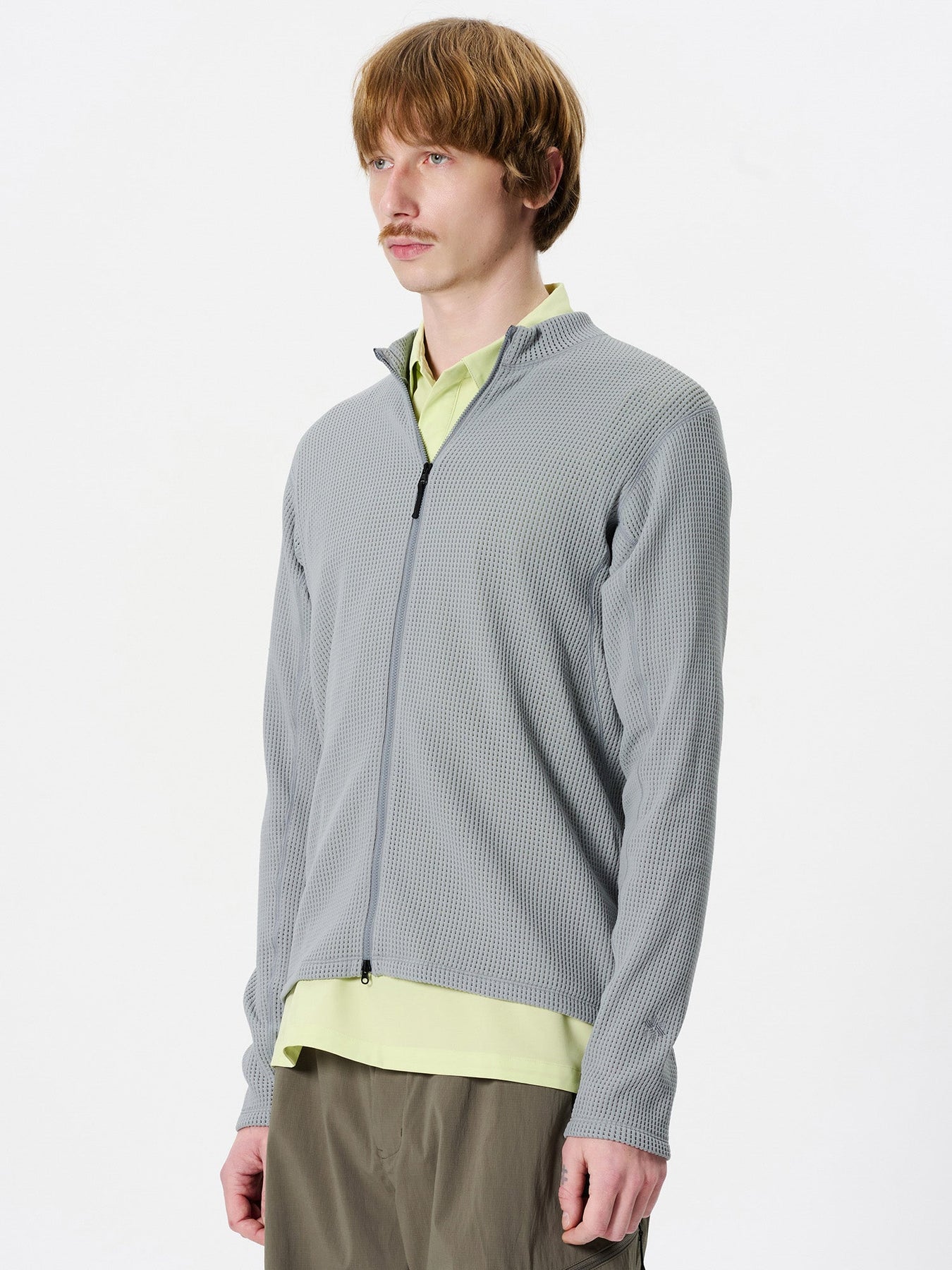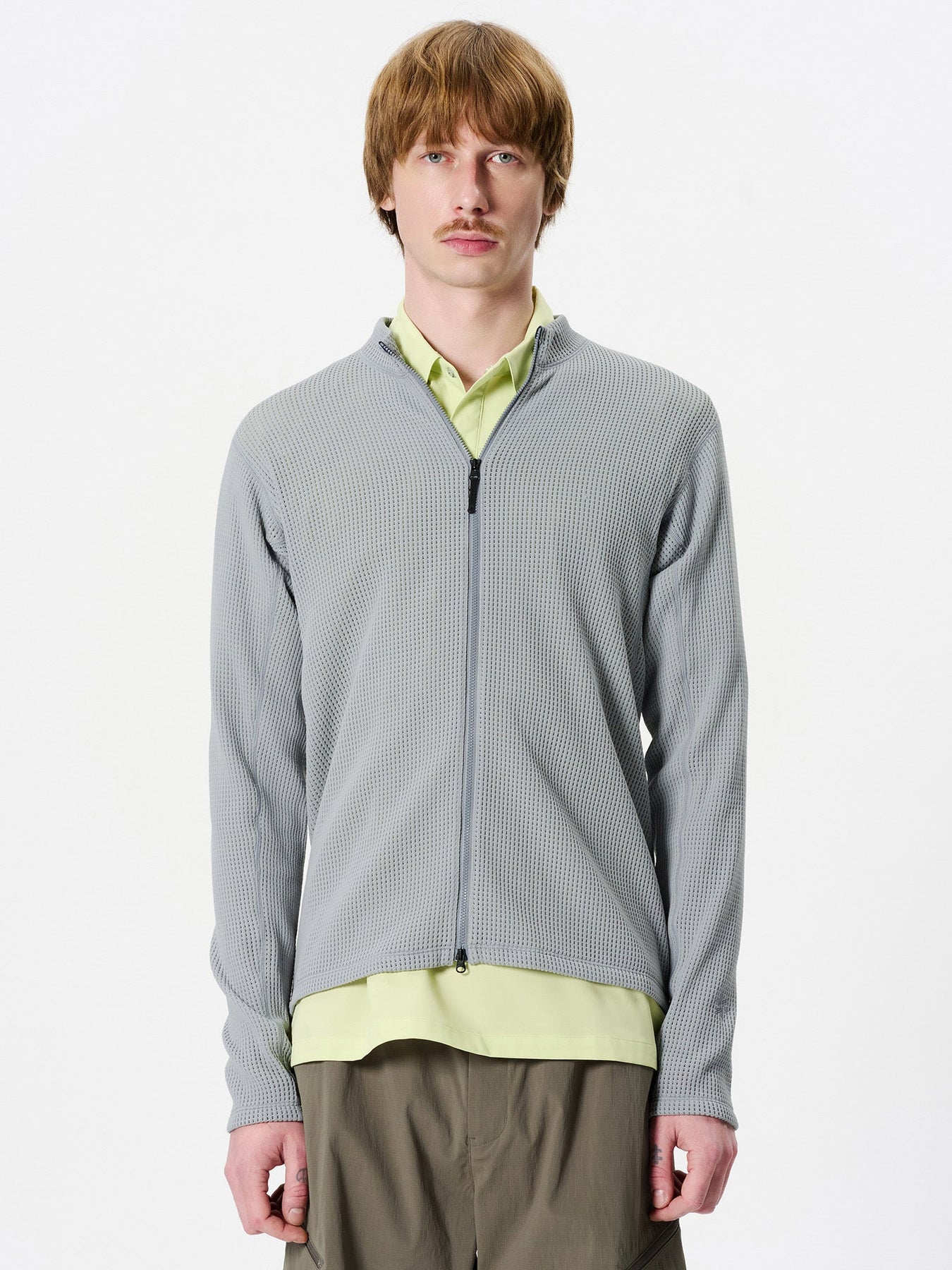 Midler jacket with excellent breathability and moderate heat retention. Made of POLARTEC Power Dry with double knit construction that quickly wicks and disperses sweat. The material has a mesh structure that provides breathability, allowing the garment to maintain a comfortable microenvironment.