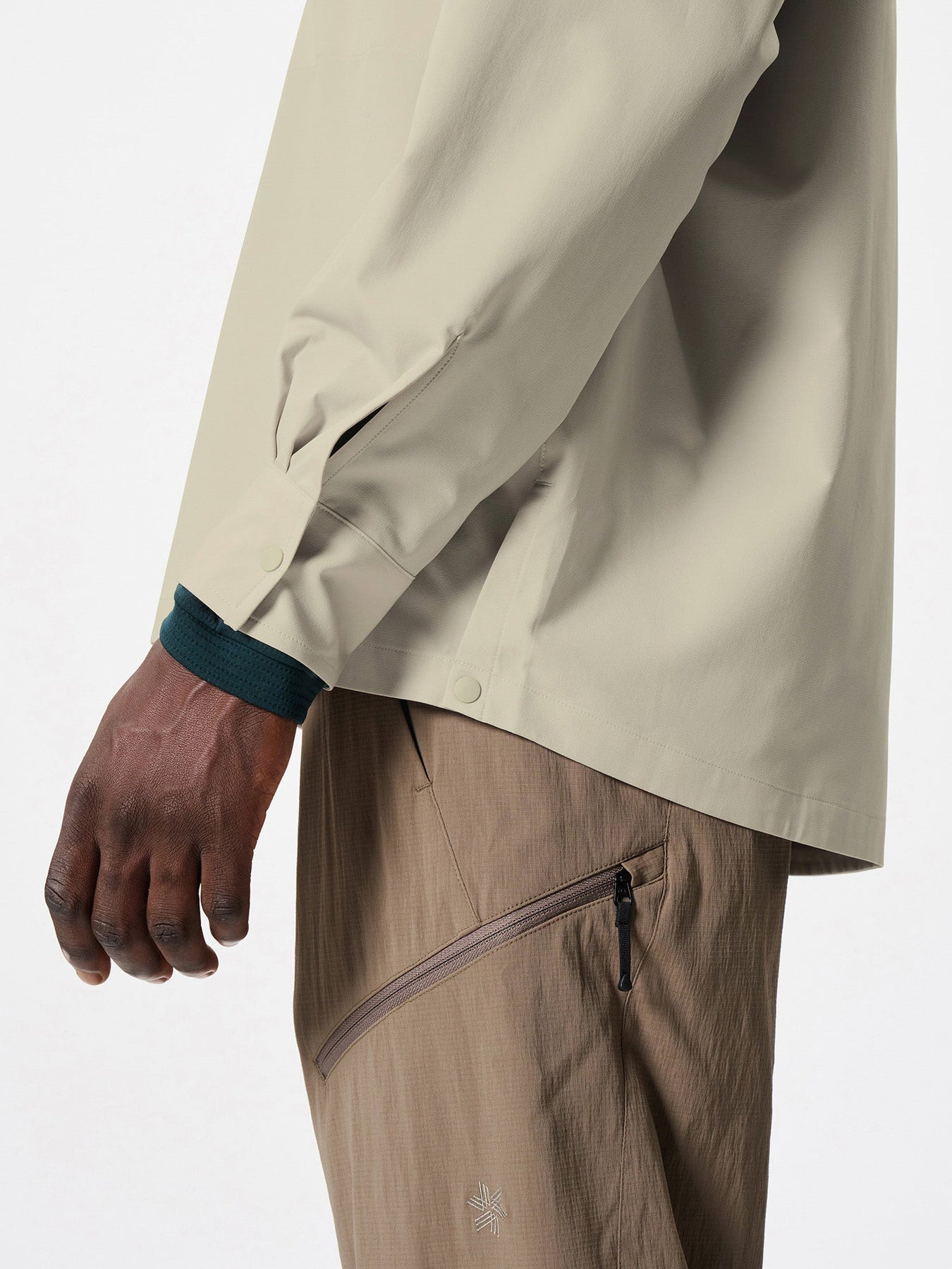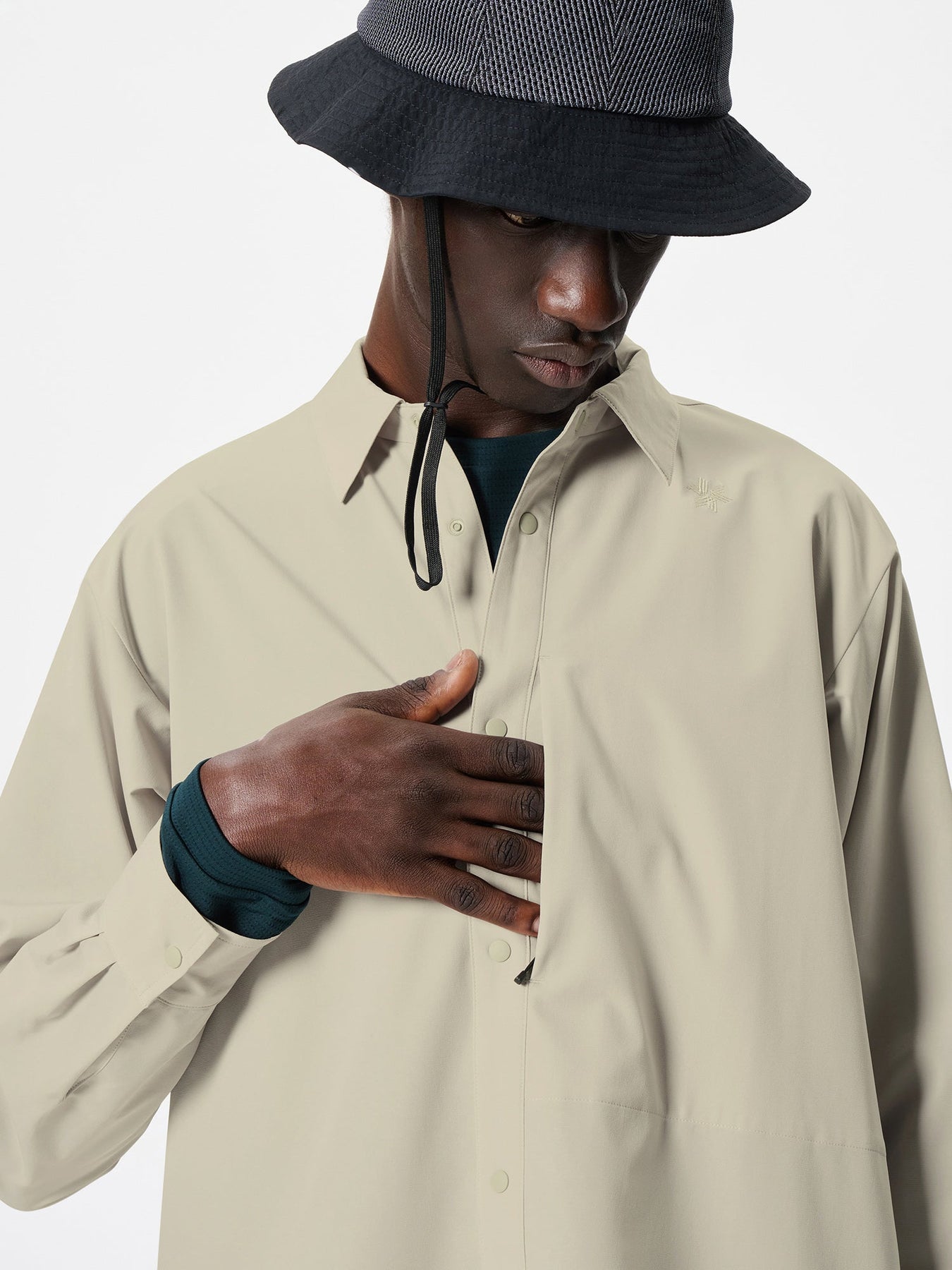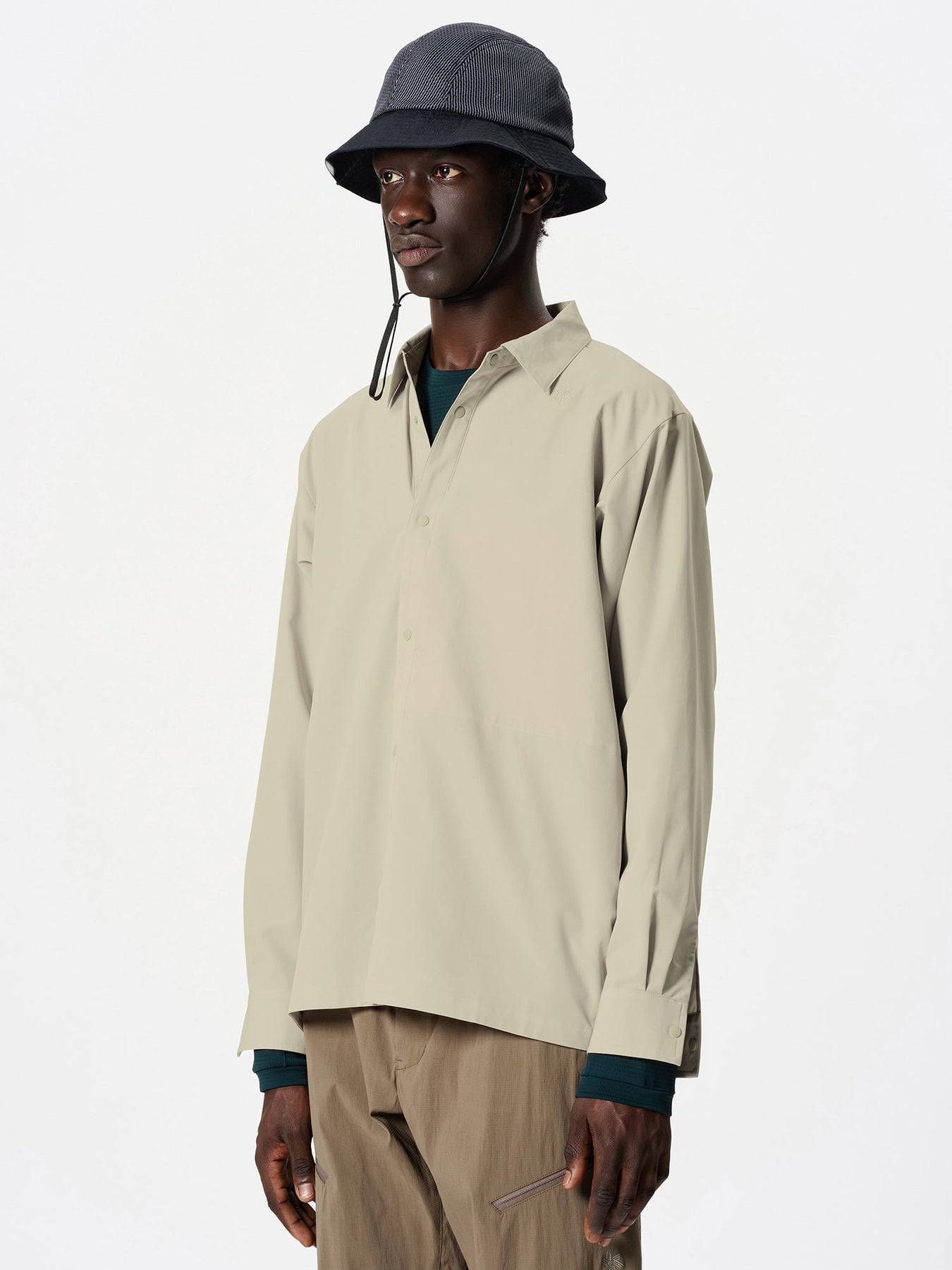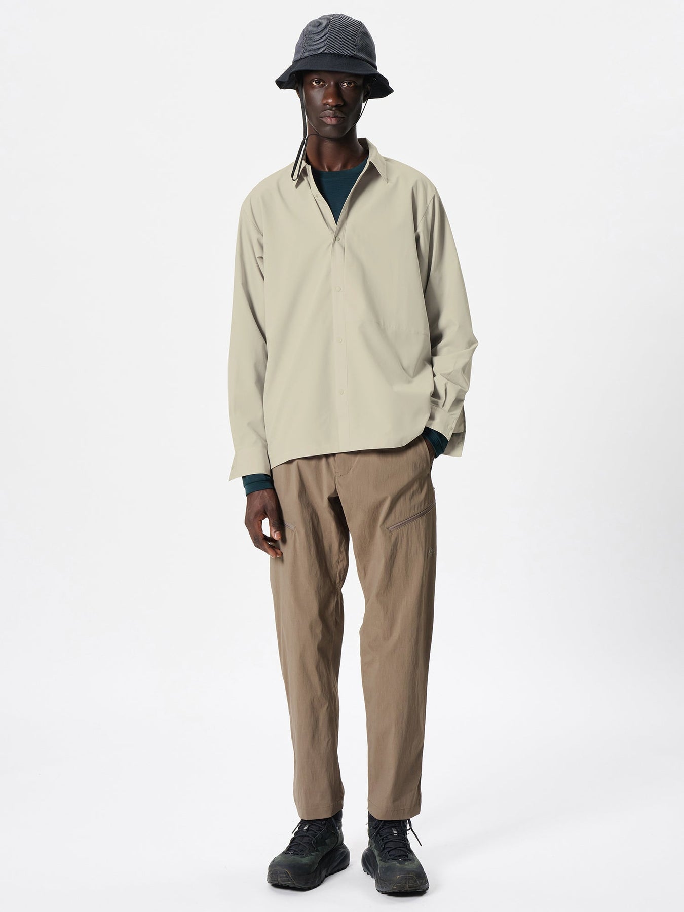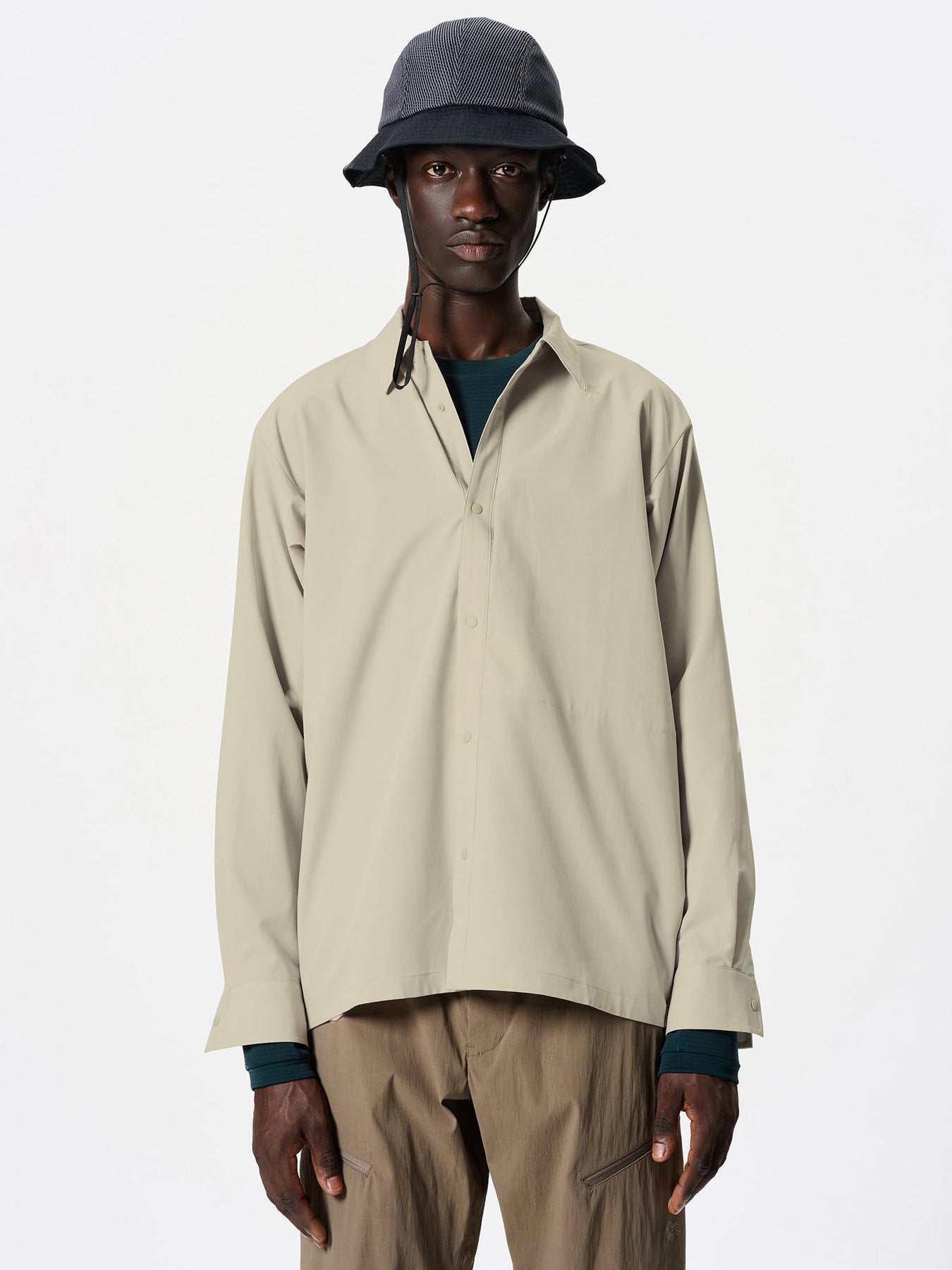 A high-performance shirt that allows going to the mountains or other outdoors with the style of everyday wear. Made of a thin fabric with a double weave structure that has excellent stretch and breathability. This item combines functionality that can be worn as a wind shell, with a sophisticated design.
