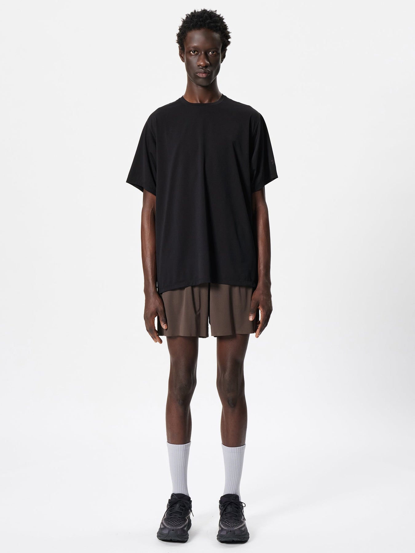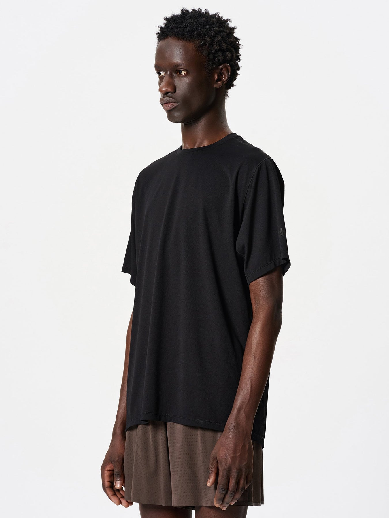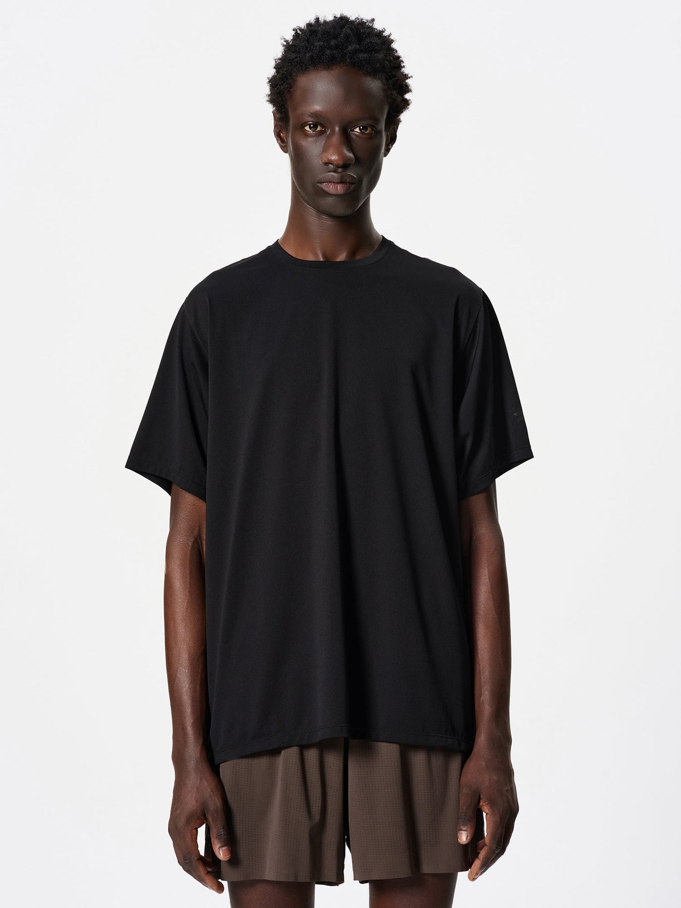 A short-sleeve performance T-shirt designed for high-sweat activities such as running and trekking, offering dry comfort and easy movement for active use.