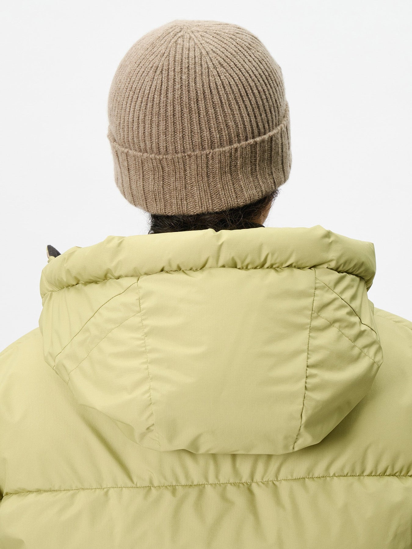 A cashmere knit cap crafted with a plush, voluminous texture, offering luxurious comfort and refined simplicity for everyday wear.