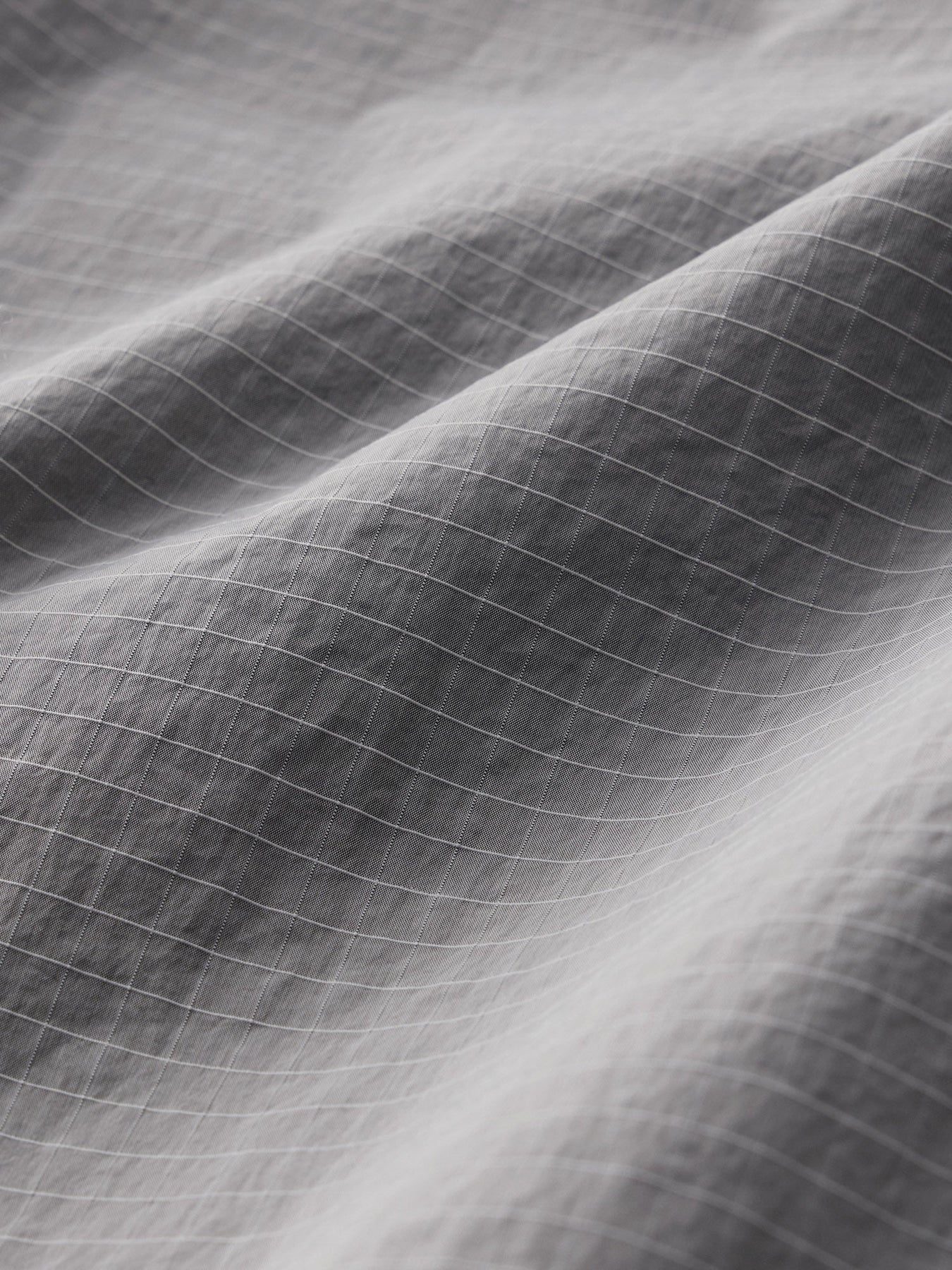 • Ripstop fabric woven with black solution-dyed yarn only in the weft.