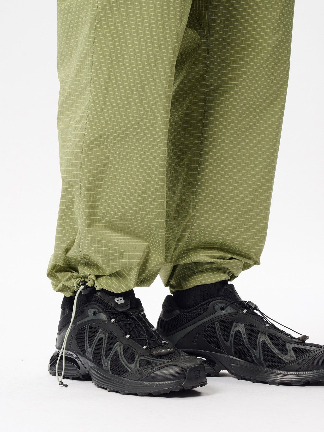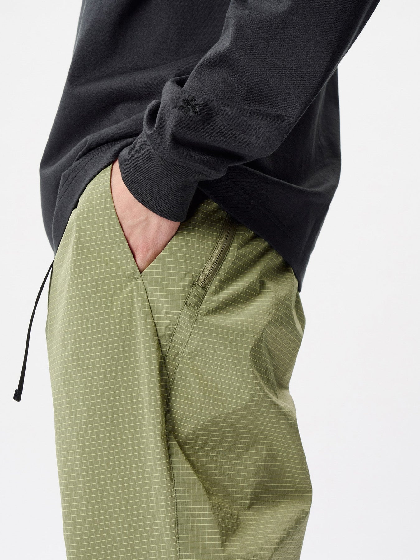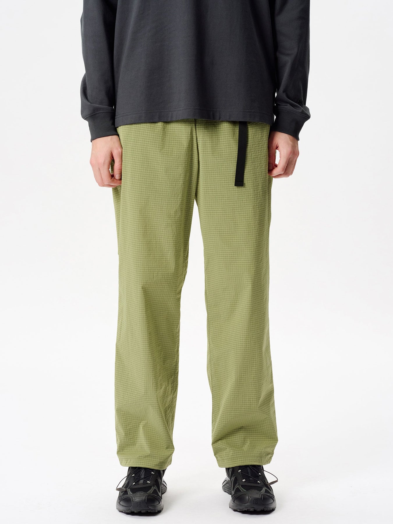 Pants made from Goldwin’s original fabric, offering a refined, understated appearance with subtle depth of color and texture.